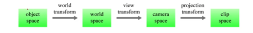모델 - 뷰 - 프로젝션 변환 등을 포함하는 공간 변환을 의미한다. 이 변환들은 4x4 행렬을 사용하여 수행되며 정점은 4차원 등차좌표로 표현된다.